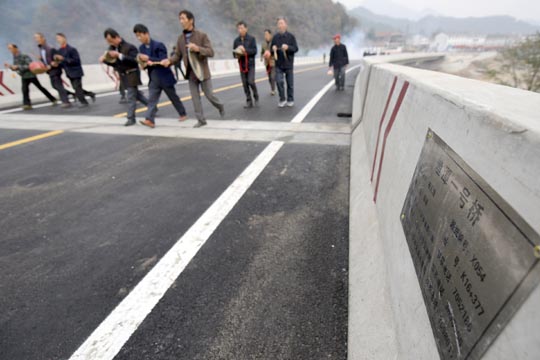11月10日,大別山旅游扶貧快速通道水毀修復(fù)工程漁潭段改線建成通車。當(dāng)?shù)卮迕袂描尨蚬?、載歌載舞,以自己特有的方式歡慶這一時(shí)刻的到來(lái).