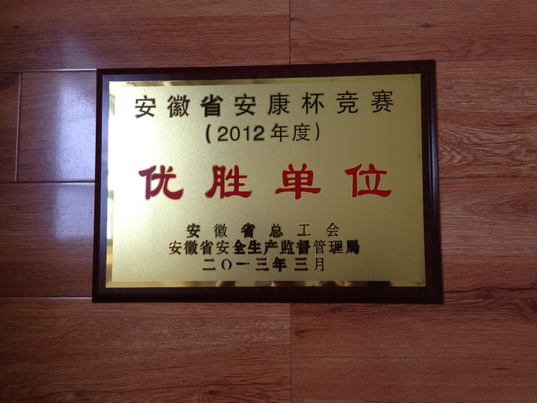 近日,實(shí)業(yè)公司榮獲由安徽省總工會(huì)、安徽省安全生產(chǎn)監(jiān)督管理局頒發(fā)的安徽省2012年安康杯競(jìng)賽“優(yōu)勝單位”稱(chēng)號(hào)。