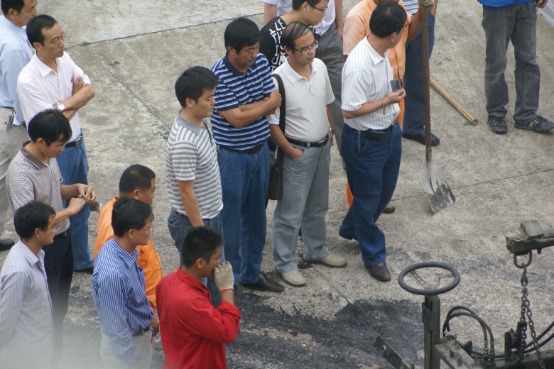2010年9月10日上午10時(shí),梅山路“白”加“黑”改造工程的業(yè)主,六安市建委副主任曹德林、總工周培勇攜本項(xiàng)目監(jiān)理單位和設(shè)計(jì)單位主要領(lǐng)導(dǎo)蒞臨我公司視察,檢查梅山路瀝青砼路面施工準(zhǔn)備情況,并作出進(jìn)一步的要求和指示,公司董事長兼總經(jīng)理萬世林同志率公司各部門全程陪同。